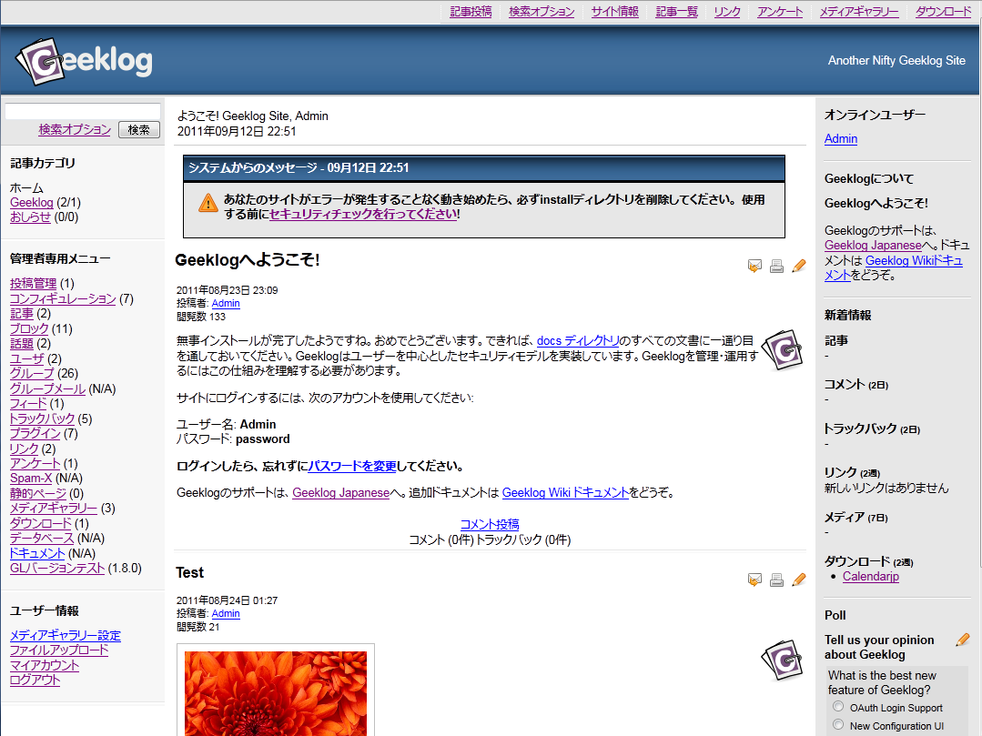 現在Geeklogをいじって遊んでます・・・