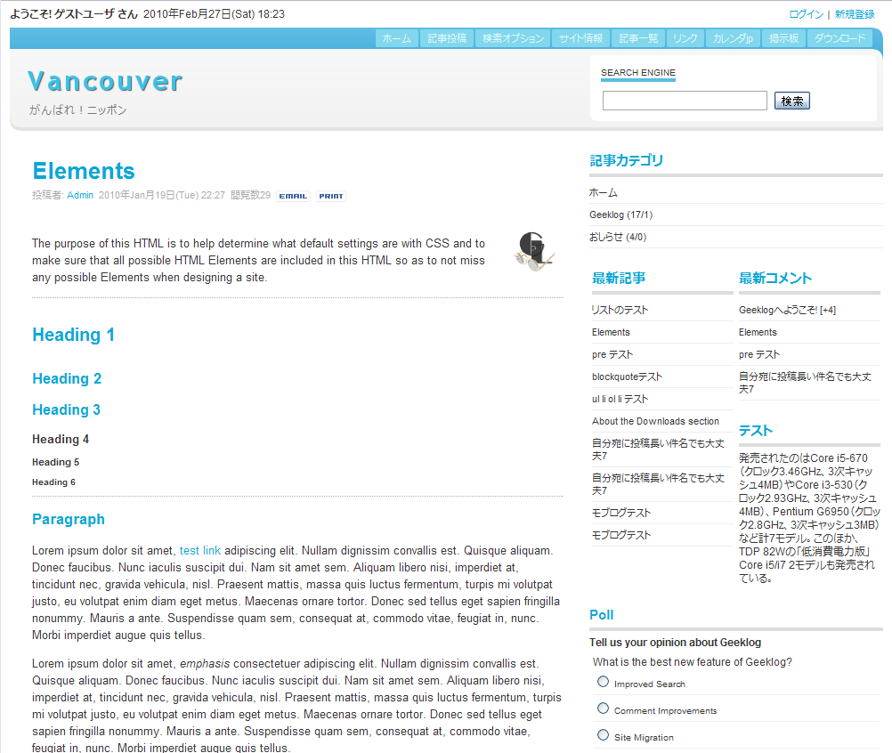 SaYさんとmystral-kkさんにより公開されていたGeeklog用テーマテスタの改良版です。